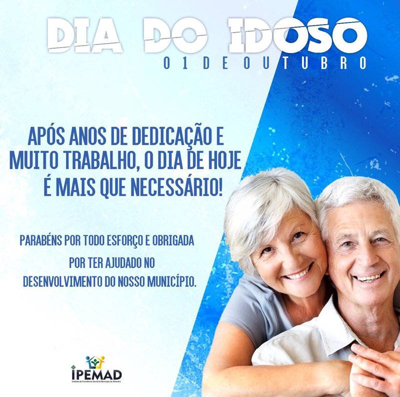 Não poderíamos deixar de prestar nossa homenagem a todos os idosos no dia do Idoso, comemorado em 1• de Outubro. Os idosos devem ser respeitados e valorizados. Não esqueçam de que todos seremos idosos um dia.