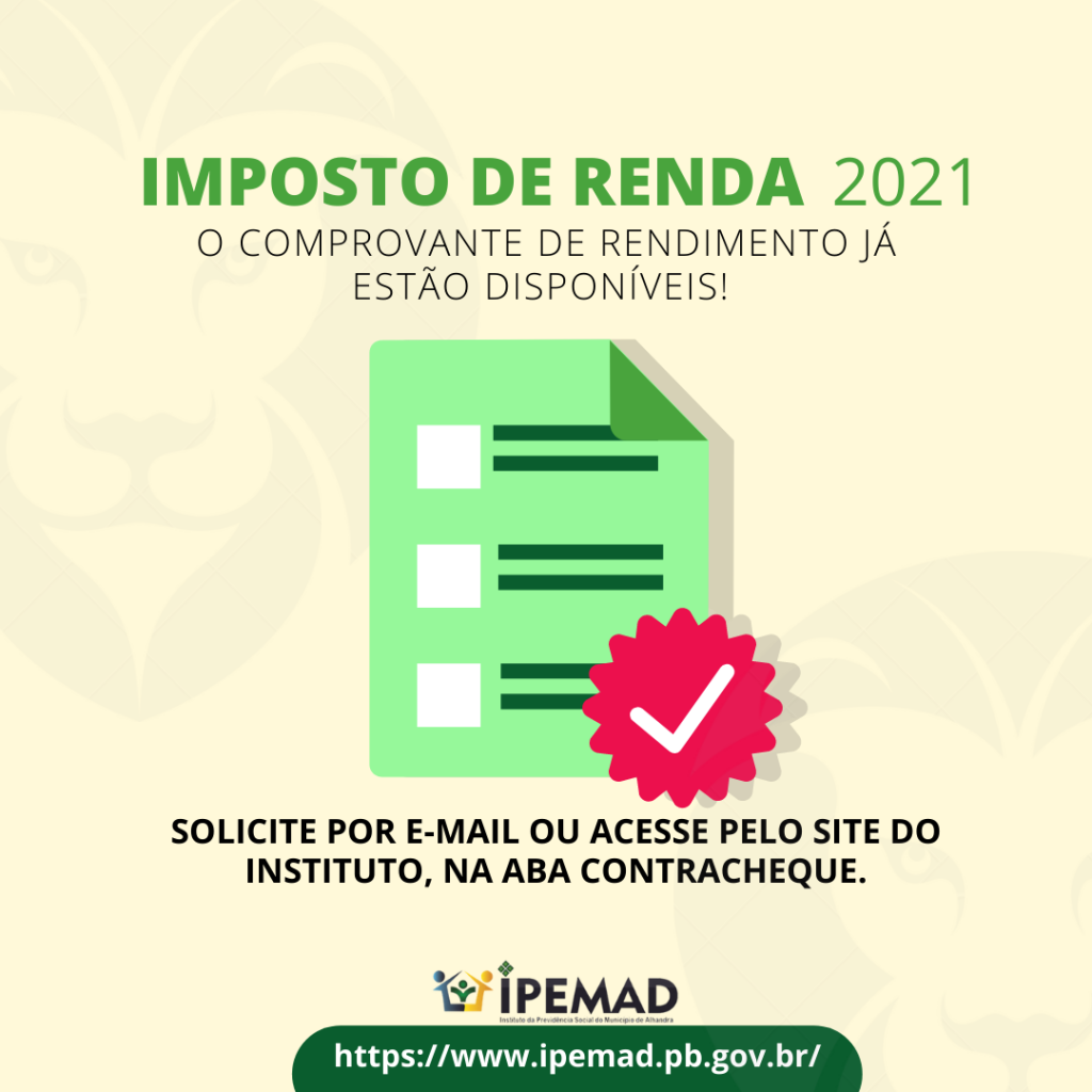 O IPEMAD informa que estão disponíveis os Comprovantes de Rendimentos para Declaração do Imposto de Renda 2021.