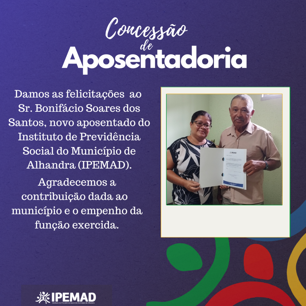 Damos as felicitações aos Sr. Bonifácio Soares , novo aposentado do IPEMAD! Agradecemos a contribuição dada ao município e o empenho na função exercida!