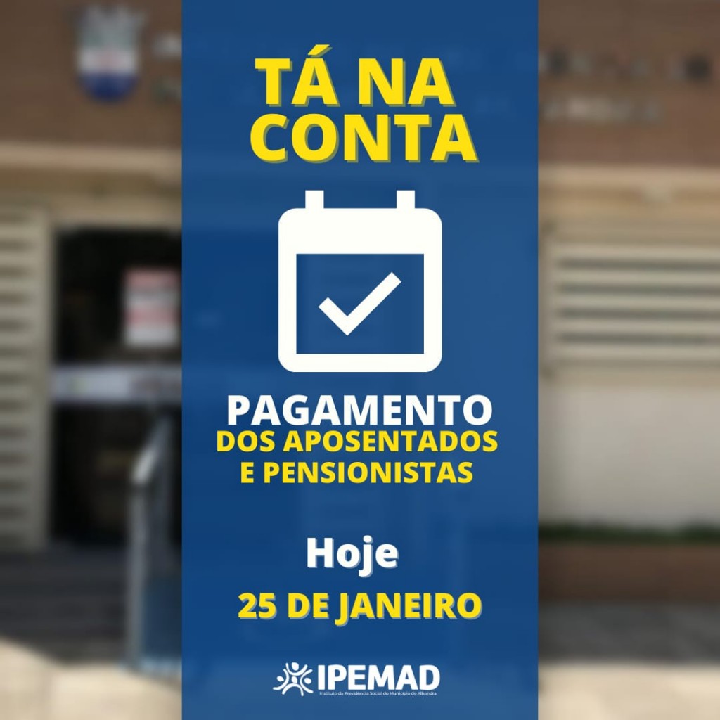 O Instituto de Previdência do Município de Alhandra (IPEMAD) realiza o pagamento dos Aposentados e Pensionistas, nesta terça-feira (25). Honrando o seu compromisso com os nossos segurados.